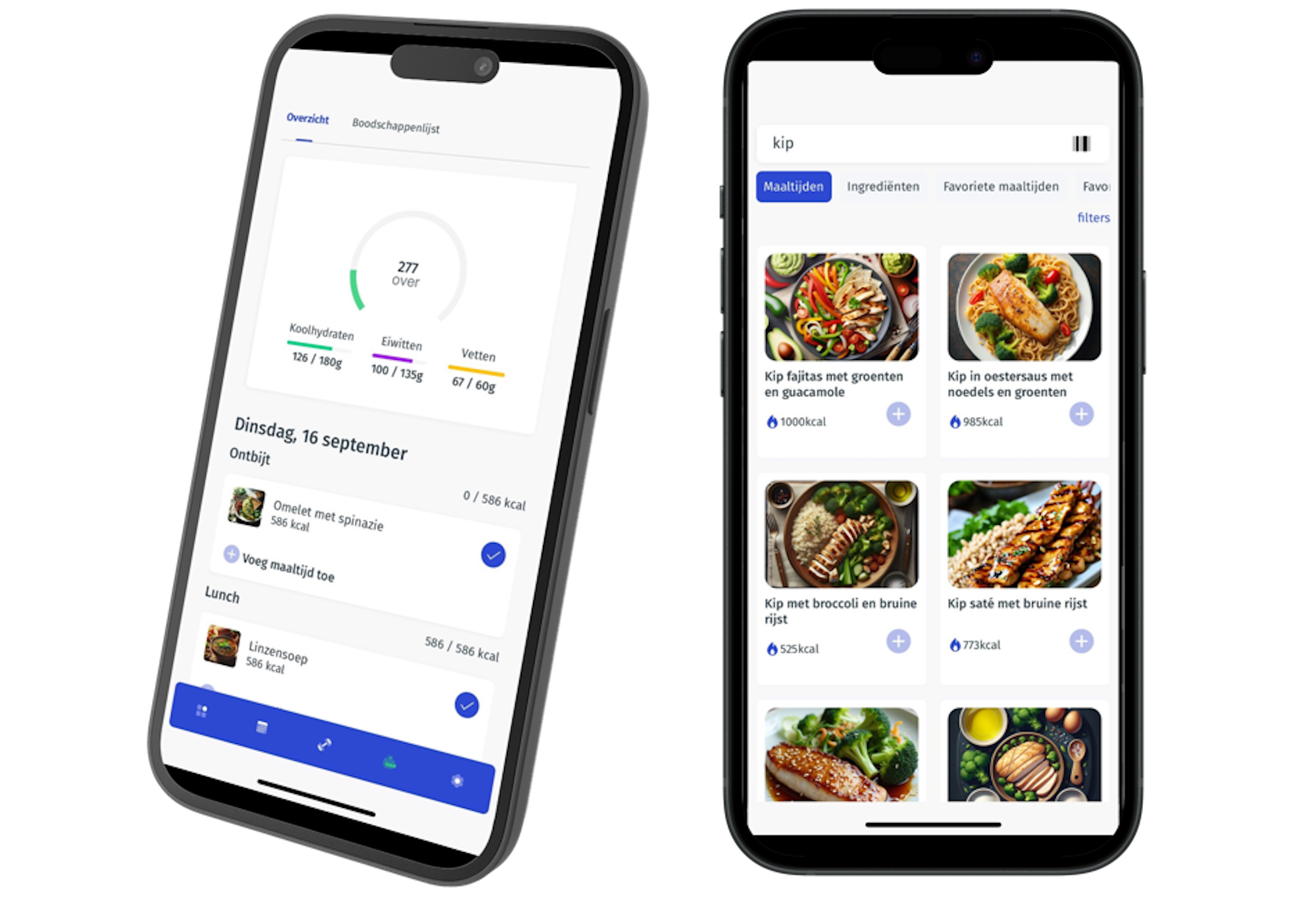Toegang tot een uitgebreide maaltijdendatabase, afgestemd op ieders voorkeuren en doelen.