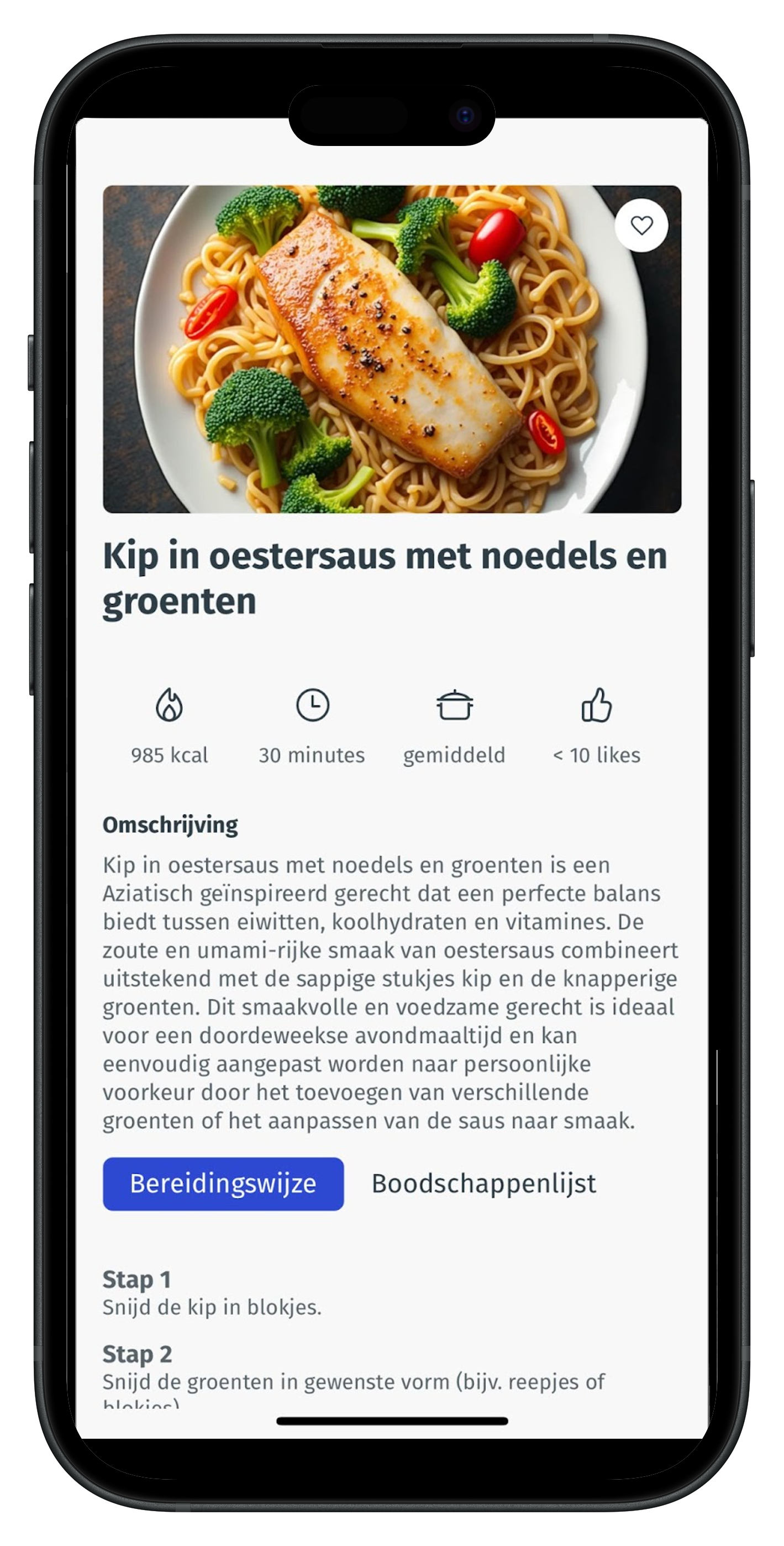 Toegang tot een uitgebreide maaltijdendatabase, afgestemd op ieders voorkeuren en doelen.